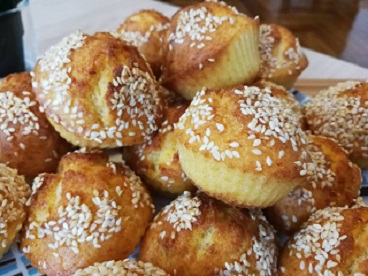 Kada napunite kalupiće pospite sve susamom i stavite da se peku. Na 200 stepeni, nekih 25 minuta.