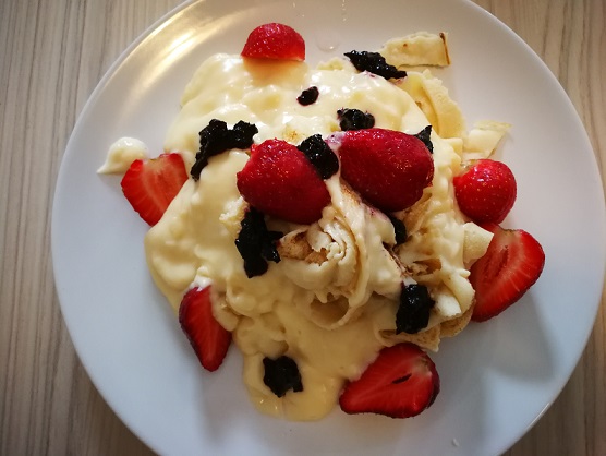 Mislim da nema osobe koja ne voli palačinke. Nekada davno u našoj porodici pravile su se samo slatke, sa džemom ili orasima i šećerom. A davno su nastale i pekle se na nekom vrelom kamenju pa vremenom nastale sasvim slučajno flambirane, pa onda se dodavalo voće, suvo i sveže, mlevena plazma, koštunjavo voće, kokos. Imamo tanke a i one deblje, američke, koja ja lično ne volim, verovatno stvar navike. Sada ih pravim i slane i slatke, a moj izbor je sada pao na ove sa žutim kremom i voćem. Ukoliko želite da obradujete svoje voljene hajde tiganj u ruke i verujte brzo ćete imati lepu poslasticu.