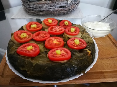 Ni sama nisam znala kako ovom jelu da dam ime, pa na kraju ispade torta, a zapravo nije. Jelo je koje se pravi relativno brzo i moram priznati da sam ga prvi put pravila i baš sam zadovoljna. Nema ništa bez sarmi, rekao bi naš narod, pri tom misleći na prave sarme od lista kiselog kupusa. Ali postoje i ove druge od vinovog lišća, koje malo žena, bar one koje ja poznajem, pravi a razlog je jednostavan. Previše vremena ode na samo motanje sarmica.
