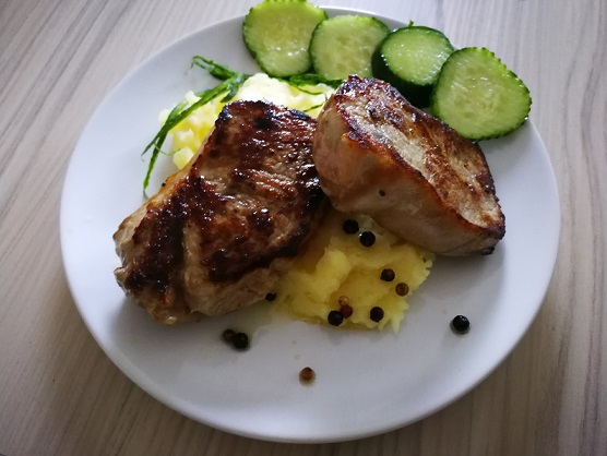 Ne bih kvarila ovako lepo i sočno meso nekim jakim dodacima, sem možda krompir pireom i nekom laganom salatom.