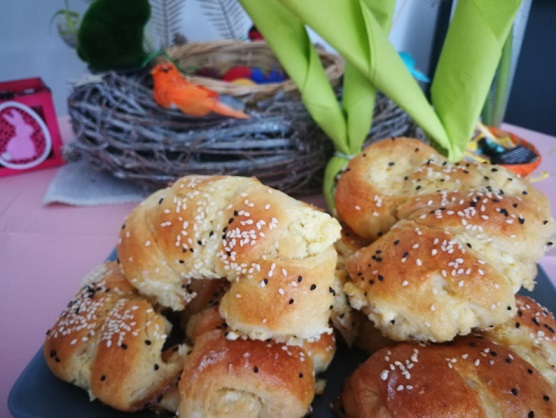 Za početak pripremite 5 jaja, pola paketića svežeg kvasca, 1 kašiku šećera, malu kašičicu soli, 1 kiselo mleko, 1 dl mleka, 1 dl ulja, 1 prašak za pecivo, 700 gr brašna, masti ili margarina za premazivanje testa, 300 grama sira, susam.