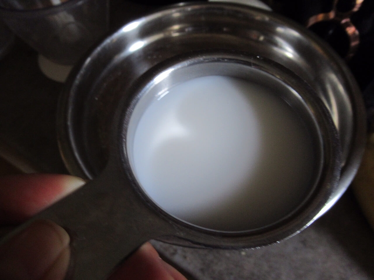 Mera je šoljica od 150 ml, ja naravno baš takvu nemam, pa sam koristila normalnu (veliku) šolju samo je nisam punila do vrha, recimo dva prsta od vrha