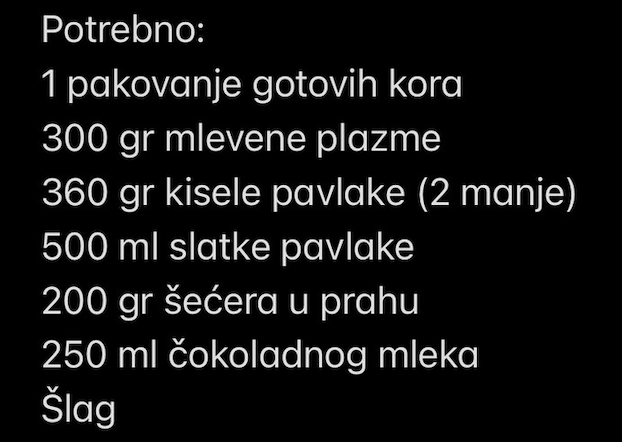 Od sastojaka vam je potrebno sl: