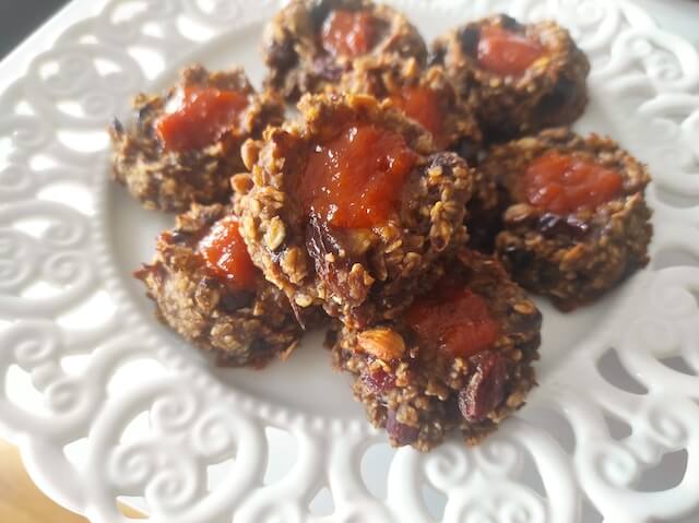 Pre pečenja sam malom kašičicom napravila udubljenje na svakom kolaču i stavila malo džema od kajsija, naravno mog džema, da se zna😜.