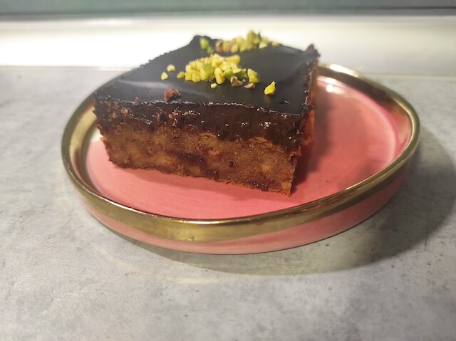 Ovako vruć krem stavite odmah preko pečenog kolača, rastanjite najbolje što znate i možete dodatno ukrasiti mlevenim orasima, lešnicima ili pistaćem.