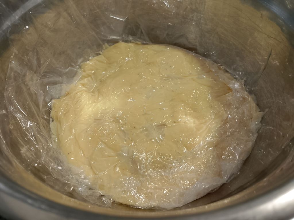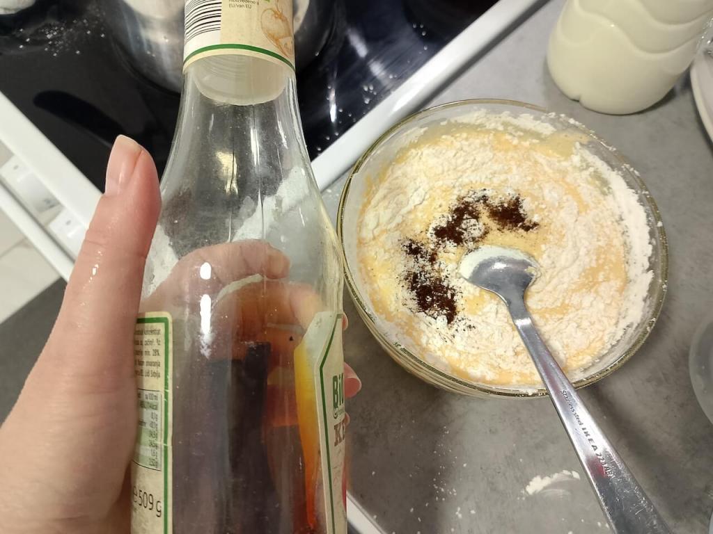 Ja sam pravila kolač od pola mere, pa samim tim sam dobila mali kolač. Od ove mere napravite 3 korice. Pečete na 180 stepeni nekih 15 minuta. Dok se korice hlade napravite fil. Fil je klasični žuti poslastičarski krem s tim što sam dodala na kraju rendanu koru limuna, sok limuna i malo uljane arome limuna.