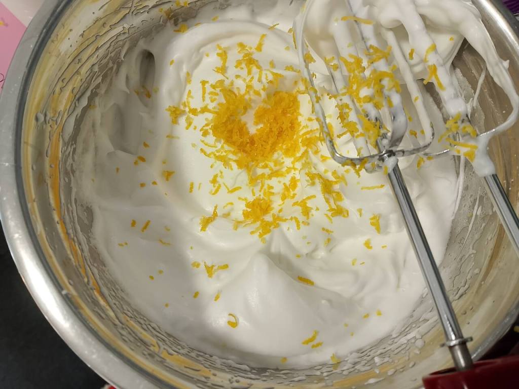 Odvojite žumanca (ostavite ih za krem) od belanaca pa im dodajte prstohvat soli i mutite. Postepeno dodajte šećer i vanilin šećer (ja sam tečnu vanilu, domaće proizvonje). Odložite mikser pa dodajte polako, mešajući špatulom, brašno, mak, PP i rendanu koru od limuna. Limun pre svih radnji ostavite da odstoji u rastvoru vode i sode bikarnbone nekih pola sata. Korice pecite u pravougaonom plehu.