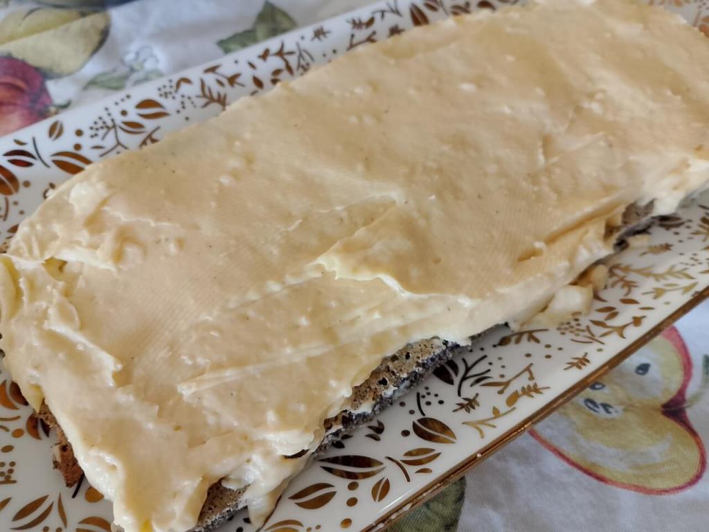 Kada vam se fil skroz ohkadio filujte kore tako što ćete završiti slojem fila. Preko možete posuti malo mlevenog maka, dekoracije radi. Stavite kolač na hlađenje.