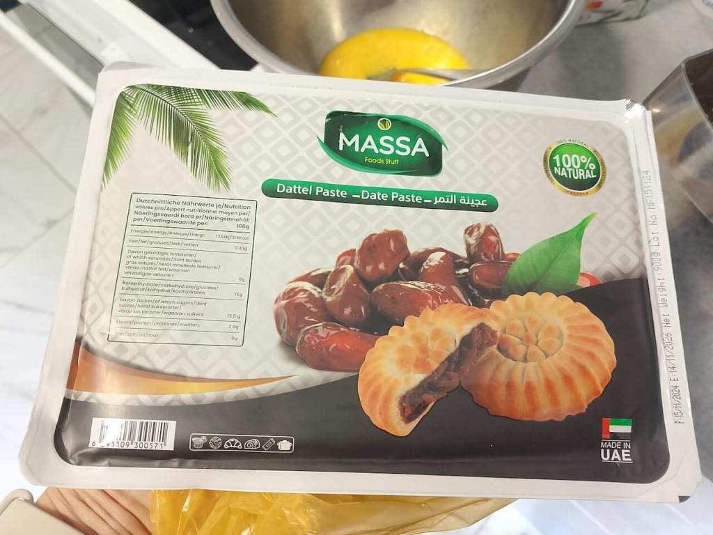 Urme možete očistiti, potopiti na 10 minuta u vrelu vodu i malo izgnječiti viljuškom ili štapnim mikserom ili još jednostavnije kupiti gotovu pastu od urmi u arapskoj radnji u Zemunu, zove se Arapski dućan ostavljam vam link: https://arapskiducan.com/en .