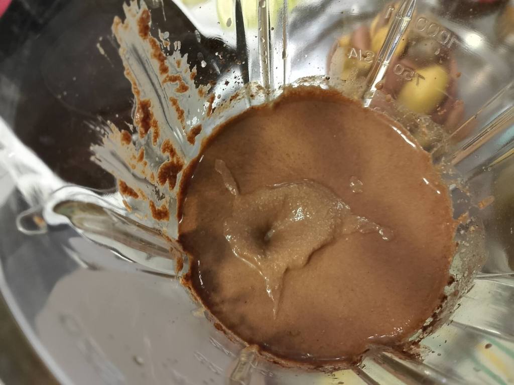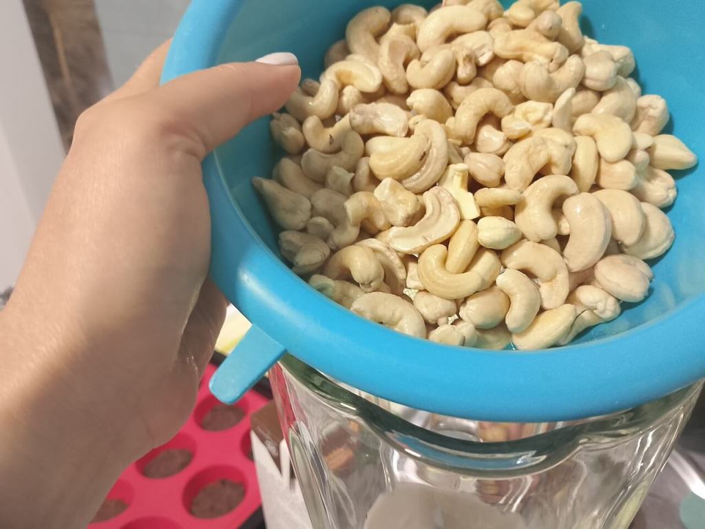 Indijski orah mora da stoji najmanje 4 sata potopljen u vodi, a možete ga potopiti i dan pre i držati u frižideru. U blender stavite sve sastojke, indijski orah, med, bademovo mleko, med, kokosovo ulje, kakao, sok od limuna….ali na kraju blendanja dodajete otopljeni želatin.