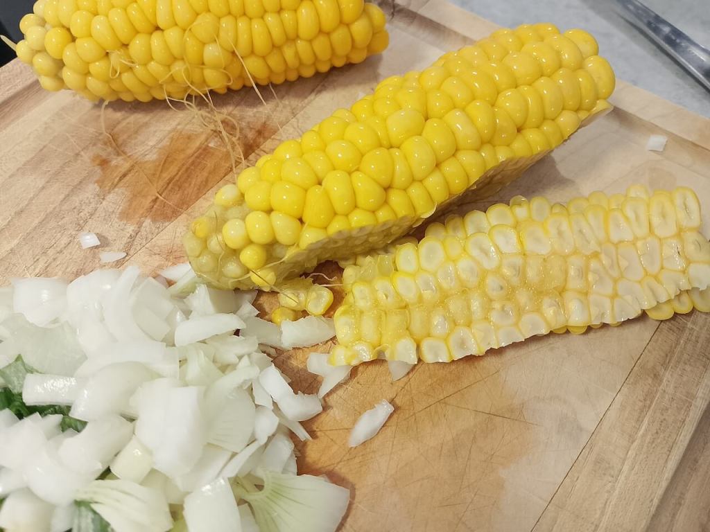 Imala sam kuvani kukuruz pa sam njega iskoristila, inače kupim onu manju konzervu. Savet da svo povrće iz konzerve dobro operete pod mlazom vode, posebno se odnosi na pasulj.