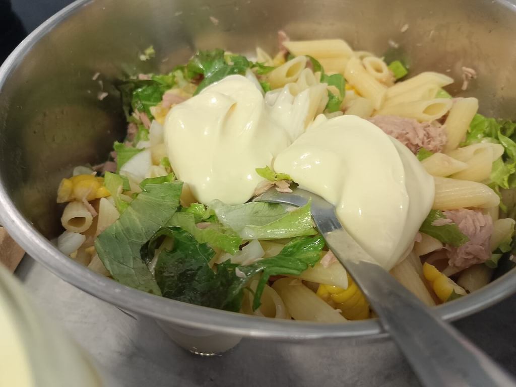 Tunjevinu ocedite od ulja pa dodajte i nju, začine, dodajte sečenu zelenu salatu ili sitno seckan kupus i tek na kraju dodajte majonez, kako bi lepo povezao sve sastojke. Ja sam sada koristila zelenu salatu jer je imam u bašti. Sva sam ponosna😊🥰. Pisala sam u ranijim objavama nije samo što je moja bašta već je organski uzgoj, što je mnogo teže ali se isplati.