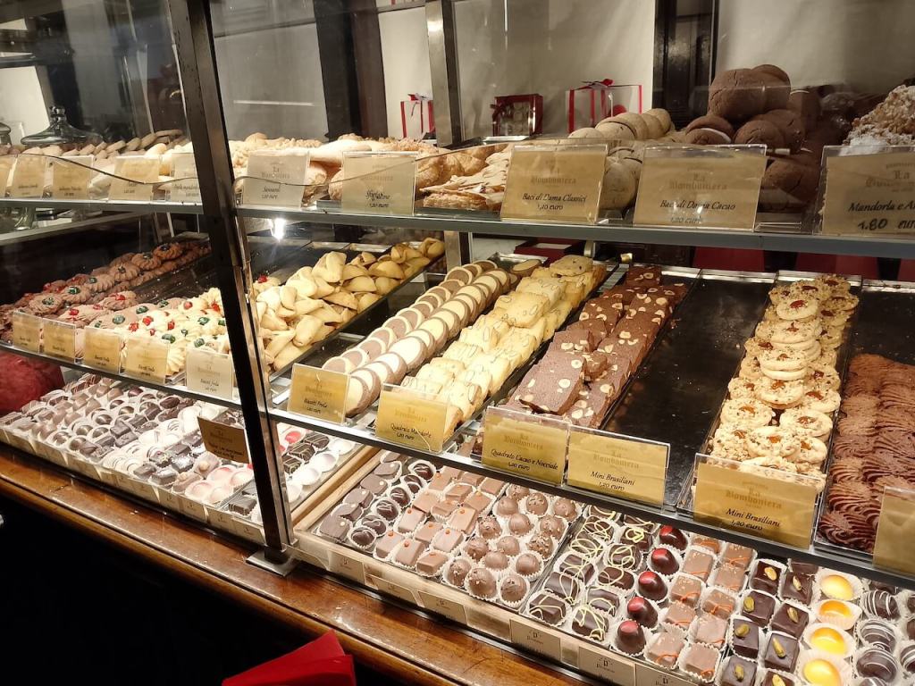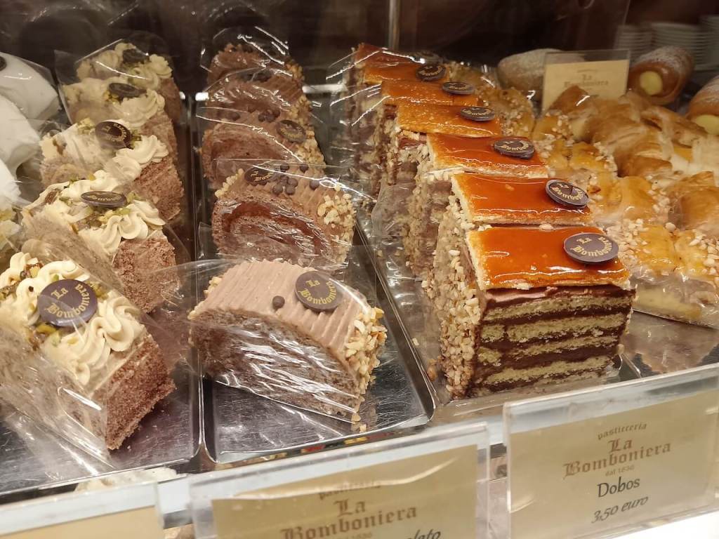 Sada prelazim na slatkoÄe. Sve vreme naÅ”eg boravka smo iÅ”li u jednu poslastiÄarnicu, koja se takoÄe nalazi u centru, desno ulica od Trga Ujedinjenja, a zove se La Bomboniera. Mala radnja puna vitrina i frižidera sa samo jednim malim stolom unutra i baÅ”tom ispred. Ovde smo se svakoga dana zaslaÄivali i svaki dan uzimali neke druge kolaÄe. Ono Å”to je zanimljivo da uz kolaÄ dobijete kakao u maloj ÄaÅ”ici. Preslatko.