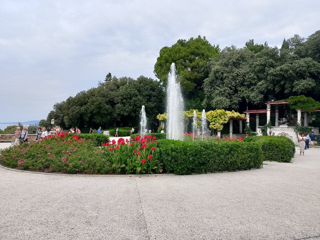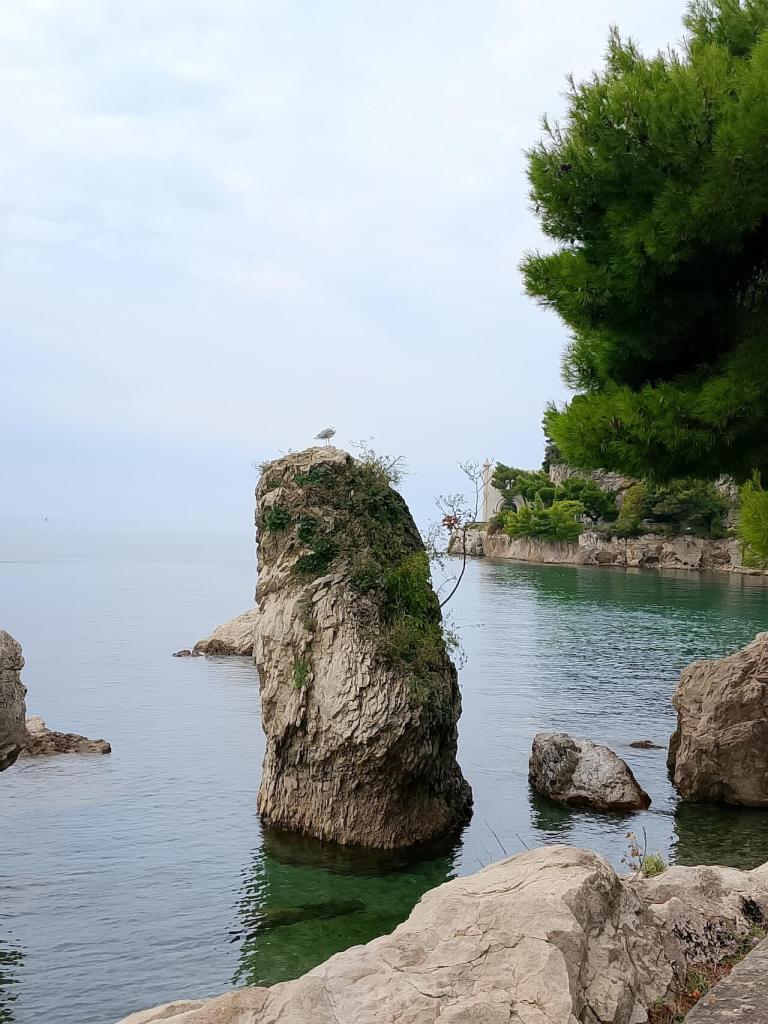 Dan pre odlaska u Sistiano smo u jednom restoranu upoznali momka iz Slovenije koji tu radi i zapoÄeli sa njim sasvim spontan razgovor. Iz prve ruke dao nam je preporuke Å”ta da obiÄemo i kako da stignemo do tih mesta. IzmeÄu ostalog rekao nam je da postoji plaža nedaleko odavde u mestu Sistiana. Bila sam jako optimistiÄna pa smo se sutradan zaputili ka ovom mestu, koje je moram priznati jako lepo sreÄeno i Äisto. Park u centru mesta je dekorisan heklanim ljubiÄastim cvetovima, nema dalje.