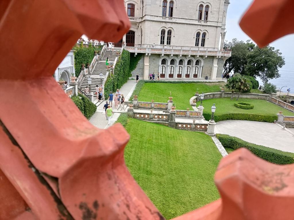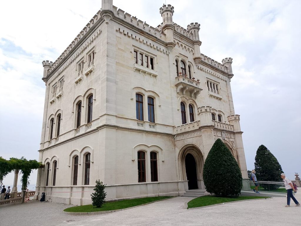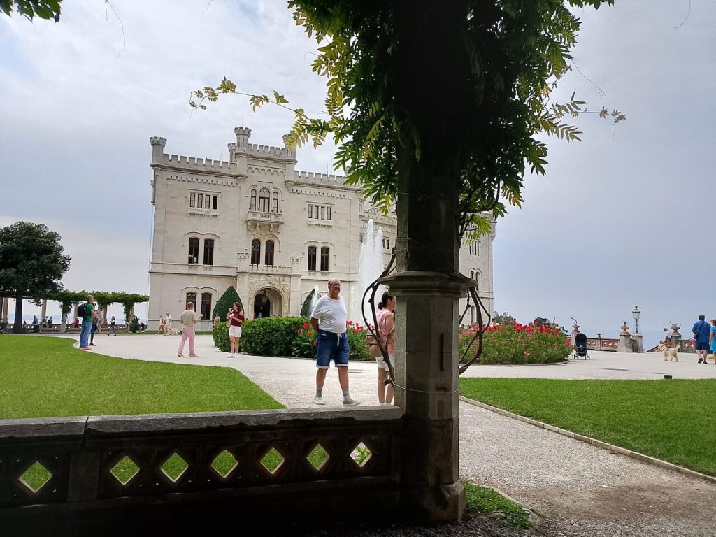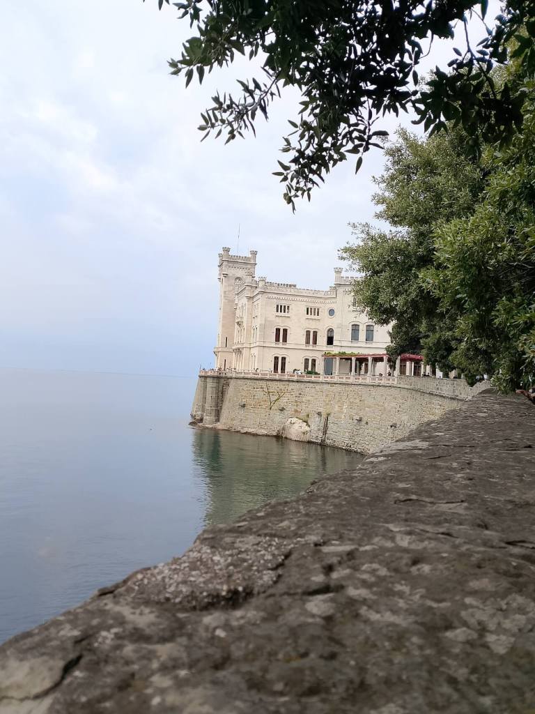 NajupeÄatljivija graÄevina (za mene) sa parkom okolo koje zauzima 22 hektara je Dvorac Miramare. Podignut je sredinom 19. veka (izmeÄu 1856. i 1860.) po želji nadvojvode Maksimilijana od Habsburga i njegove supruge Karoline od Belgije. Ceo ovaj kompleks svojom lepotom ostavlja bez daha. Dvorac se nalazi na poluostrvu Grignano na nekih 10 km od Trsta.