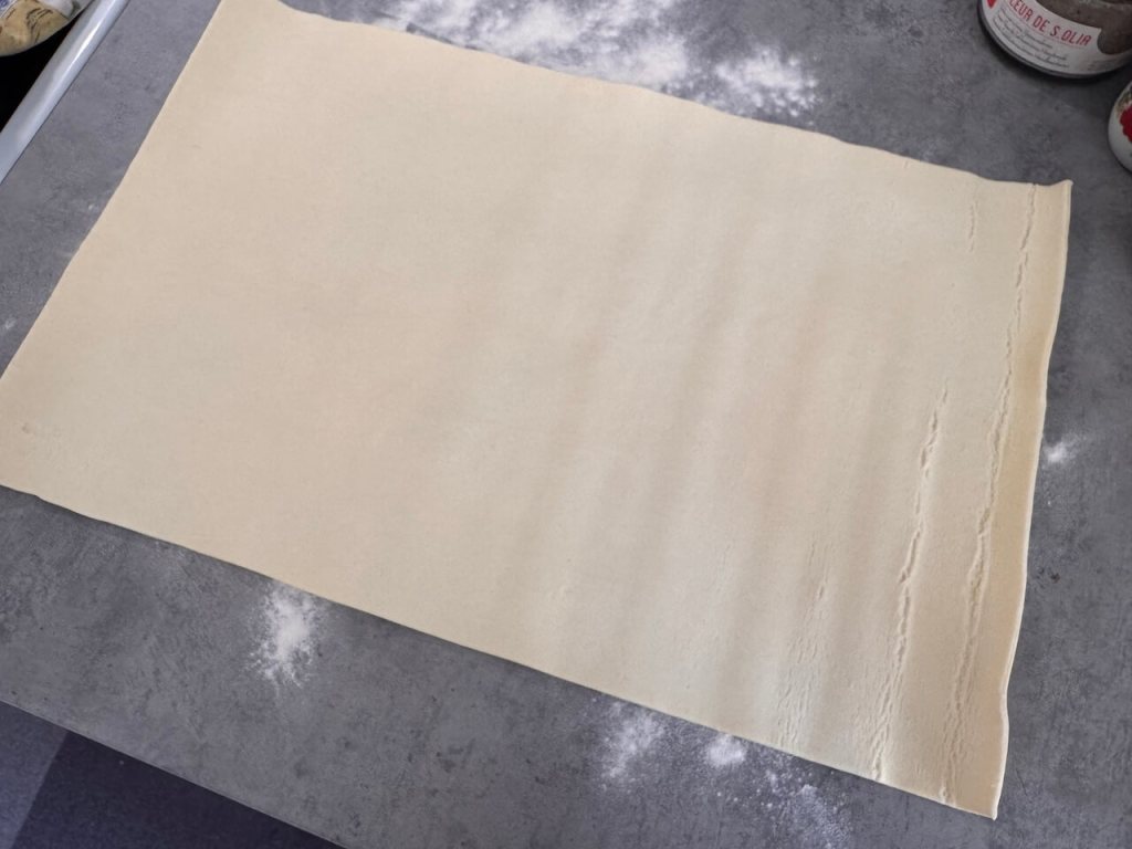Pospite malo braŔna po radnoj povrŔini i stavite lisnato testo. Nisam ga tanjila oklagijom, samo sam ga otvorila i odrolala.