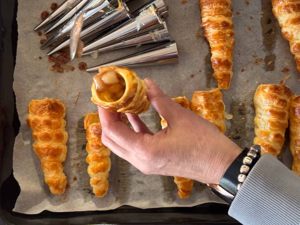 Izvadite testo polako iz modli i mlakim voÄnim filom punite kornete.