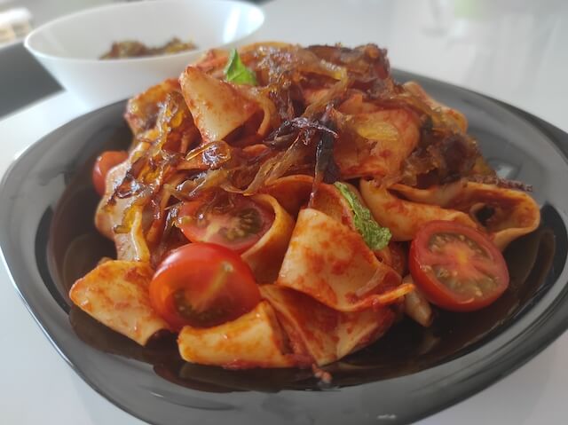 Lignje u sosu od crvenog vina (posno jelo) 🦑